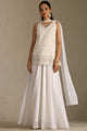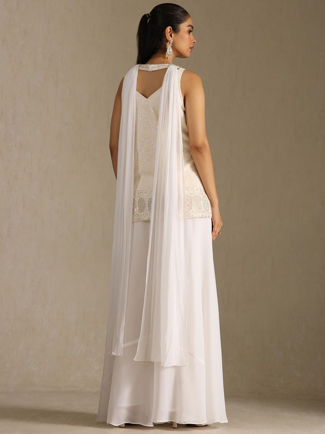 Off white,pink and blue embroidered kurta with palazzos and dupatta