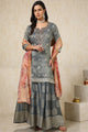 Grey & peach ,gold toned embroidered Kurti with Palazzos with dupatta