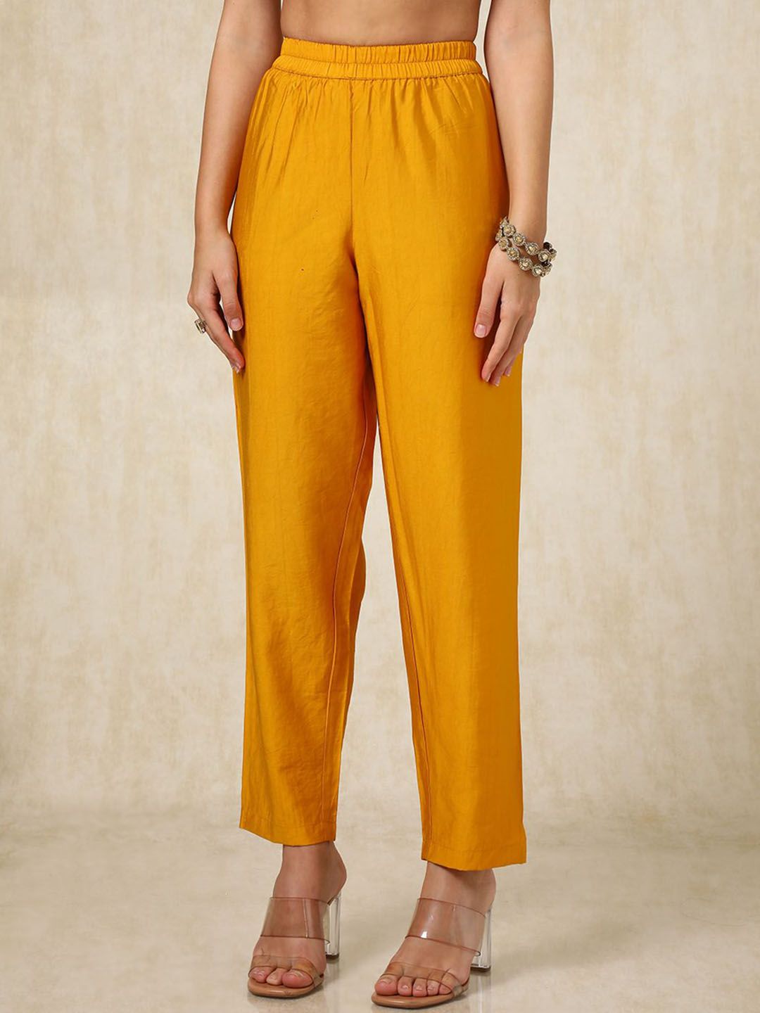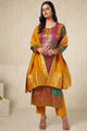 Mustard yellow & yellow printed Kurta with Trousers with dupatta