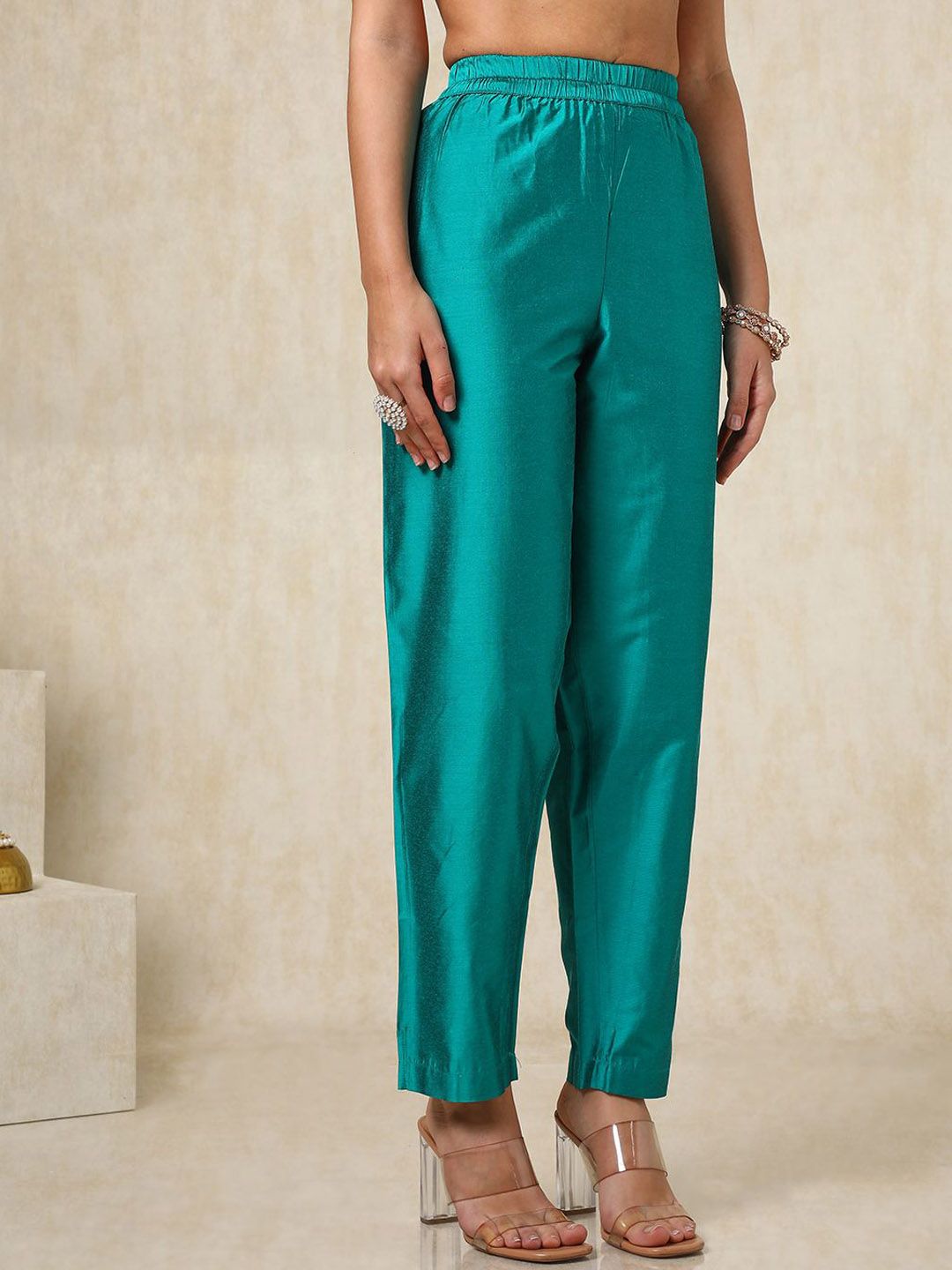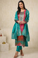 Teal blue & pink printed Kurta with Trousers with dupatta