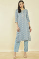 Blue and yellow printed kurta with trousers