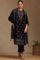 Dhiyona SO Women's Ethnic Motifs Printed Round Neck Straight Velvet Kurta With Trousers & Dupatta