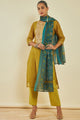 Mustard yellow & green printed Kurta with Trousers with dupatta