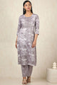 Dhiyona SO Women's Ethnic Motifs Printed Thread Work Round Neck Straight Kurta With Trousers