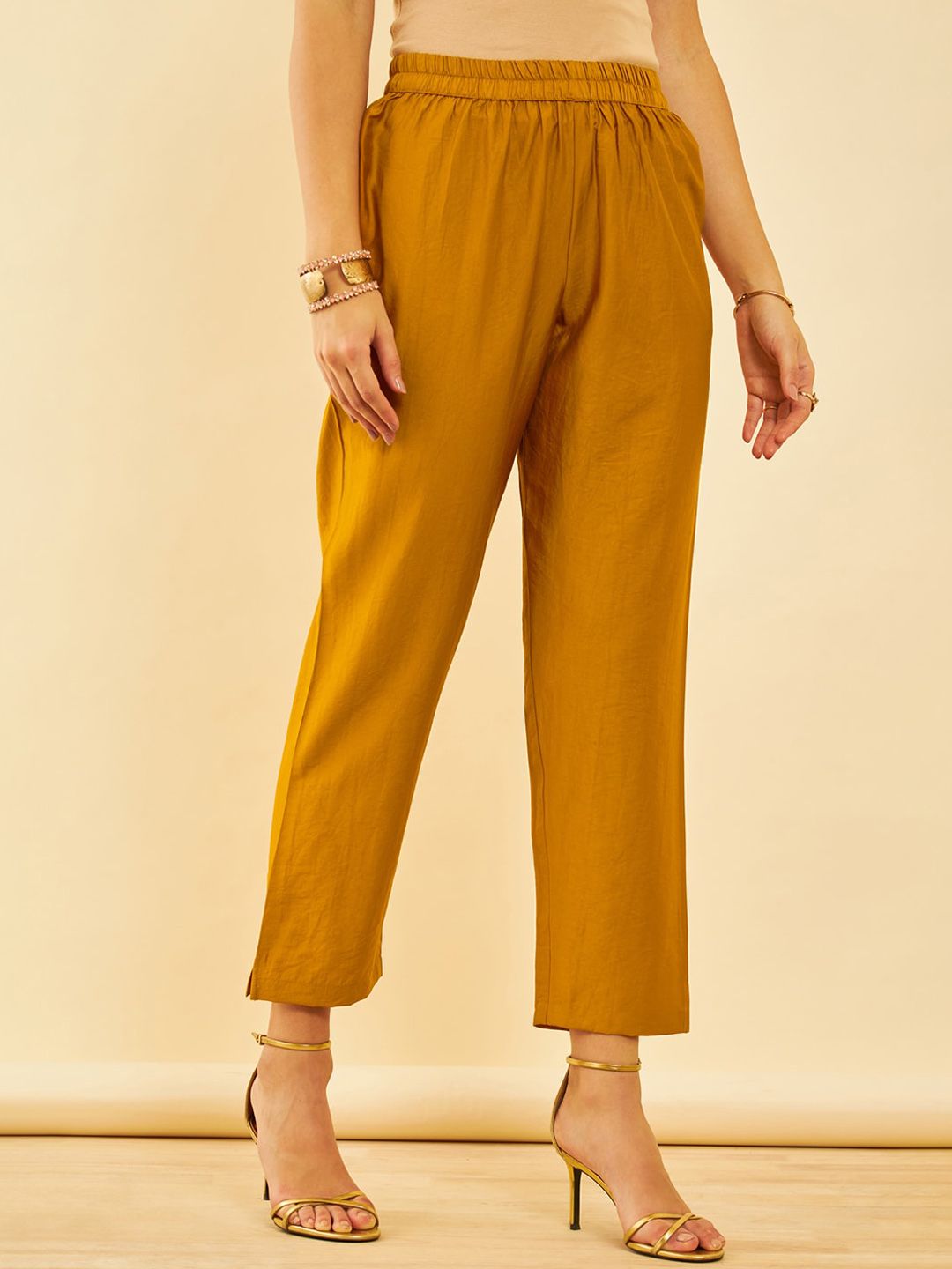 Mustard yellow woven design Kurta with Trousers with dupatta