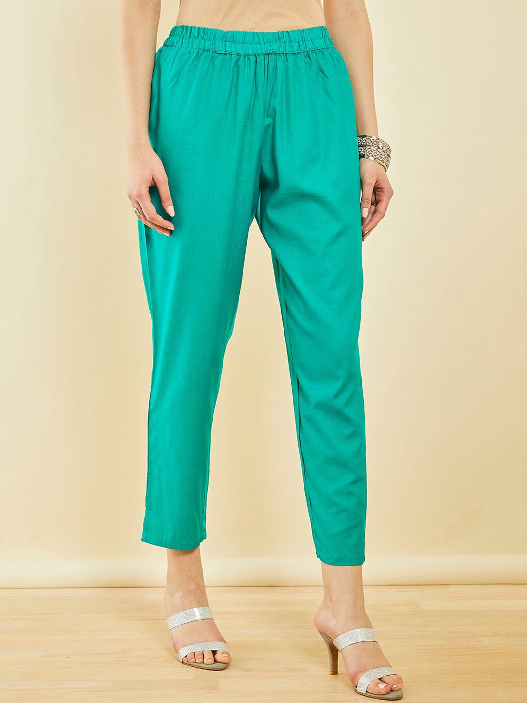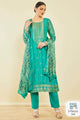 Turquoise blue woven design Kurta with Trousers & dupatta