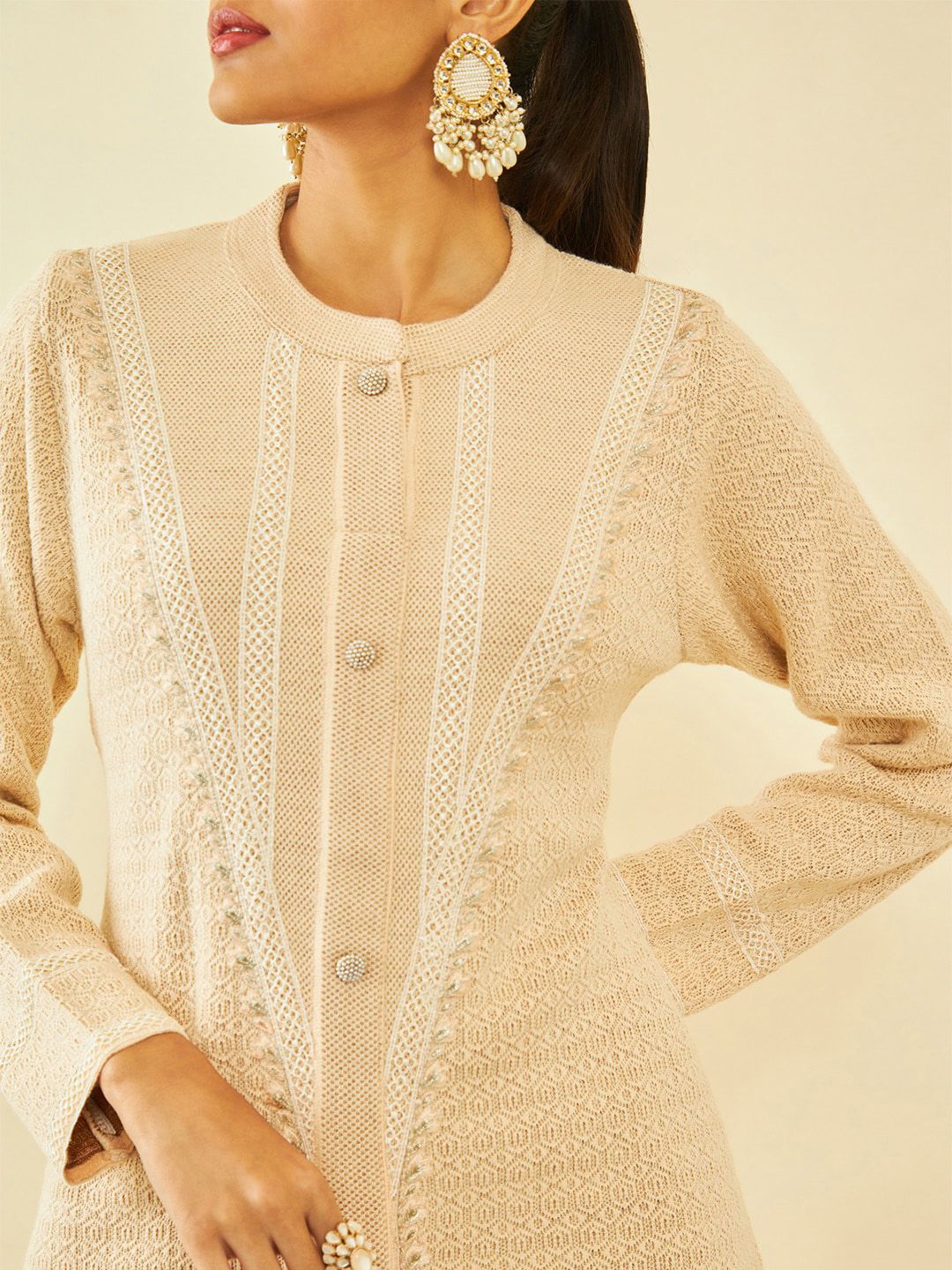 Beige woven design Kurta with Trousers