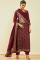 Maroon woven design Kurta with Trousers with dupatta