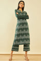 Green & white woven design Kurta with Trousers