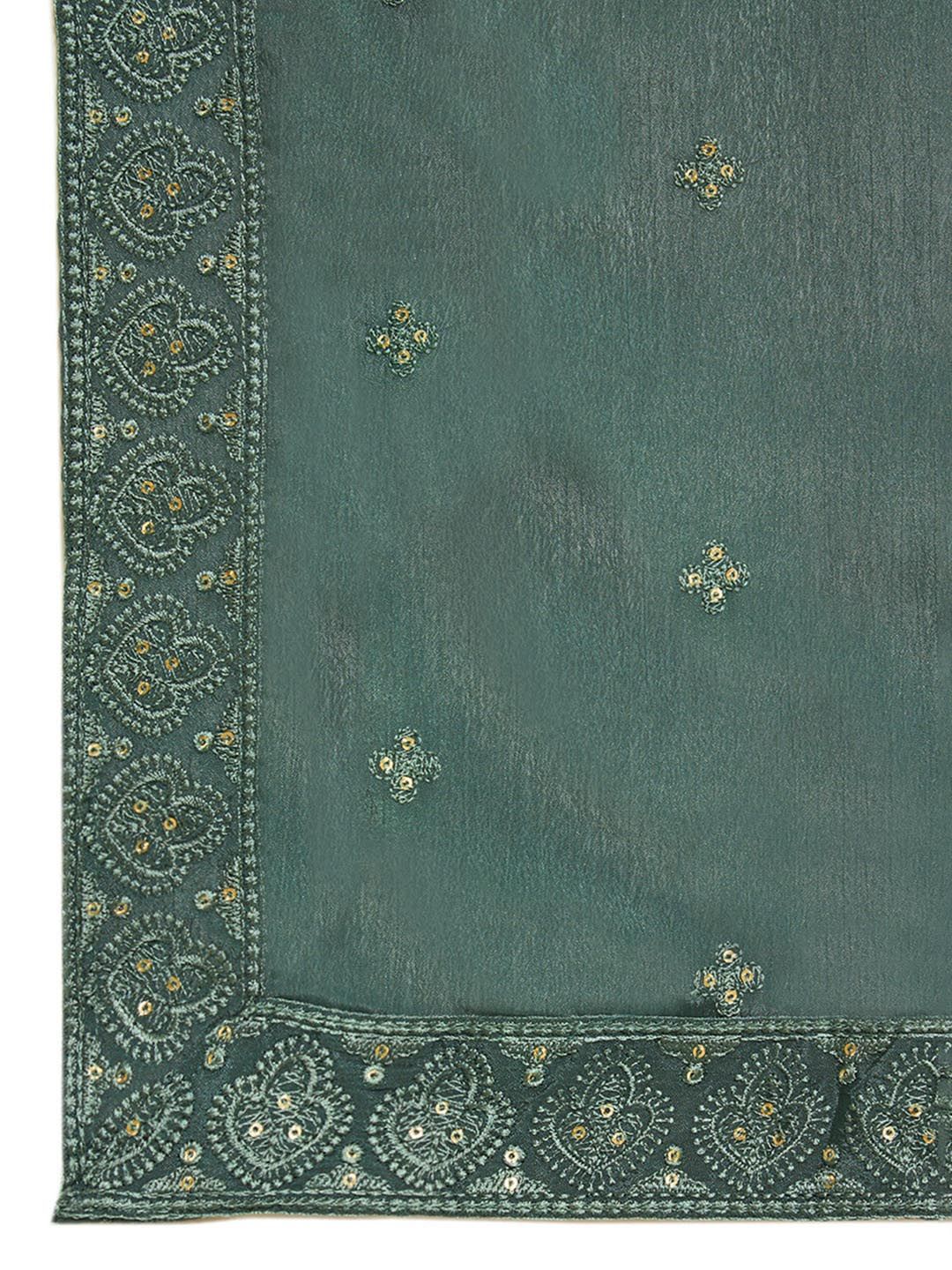 Dhiyona SO Women's Ethnic Motifs Yoke Design Regular Sequinned Kurta with Palazzos & Dupatta