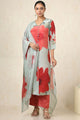 Dhiyona SO Women's Floral Botanical Printed Pleated V-Neck A-Line Kurta With Trousers And Dupatta