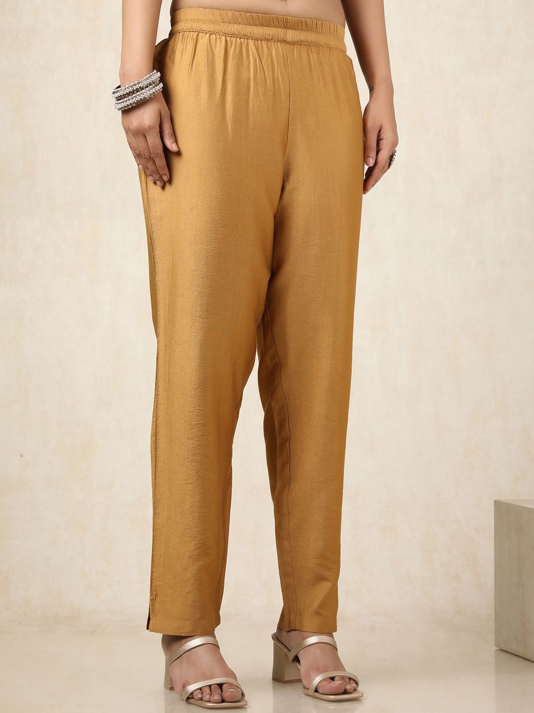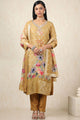 Mustard yellow, red and gold-toned printed kurta with trousers and dupatta