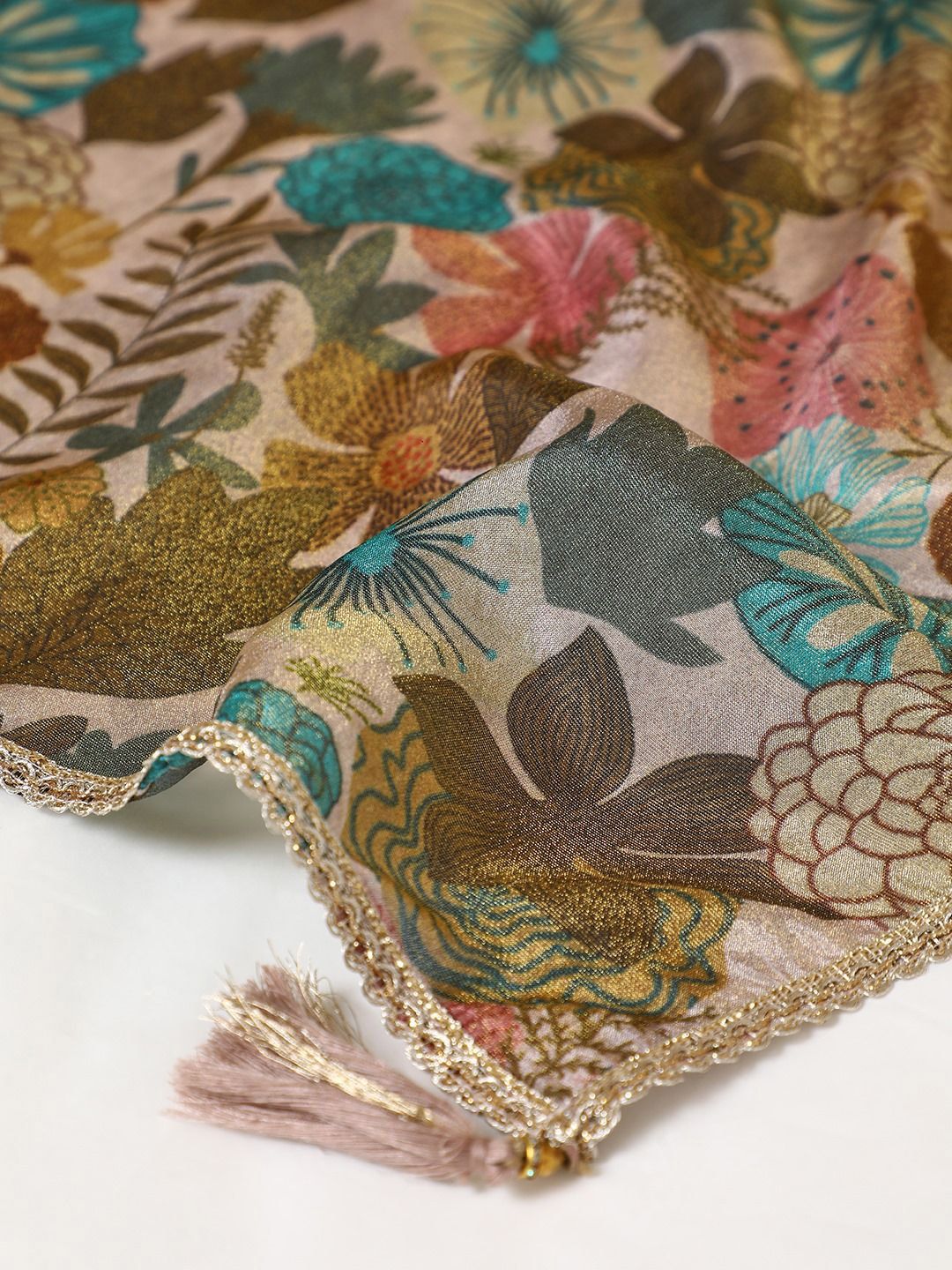 Dhiyona SO Women's Floral Embroidered Beads and Stones Straight Kurta with Palazzos & Dupatta