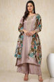 Purple & Green embroidered Kurta with Palazzos with dupatta
