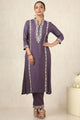 Purple and white printed kurta with trouser