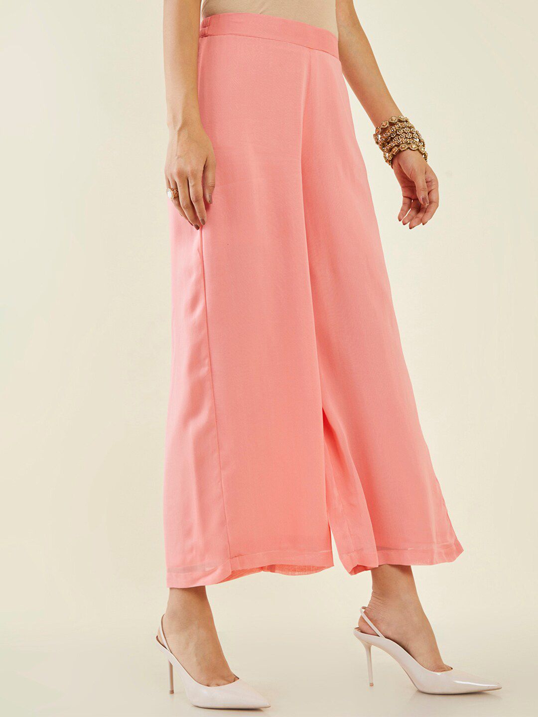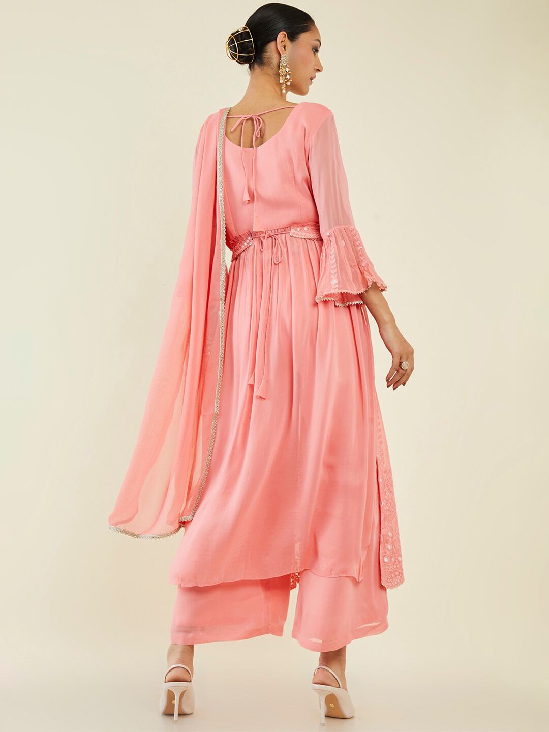 Dhiyona SO Women's Floral Embroidered Mirror Work Kurta With Palazzos & Dupatta