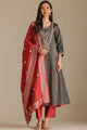 Charcoal embroidered Kurta with Trousers and dupatta