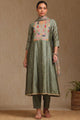 Dhiyona SO Women's Floral Embroidered Notch Neck Sequinned A-Line Kurta With Trousers & Dupatta