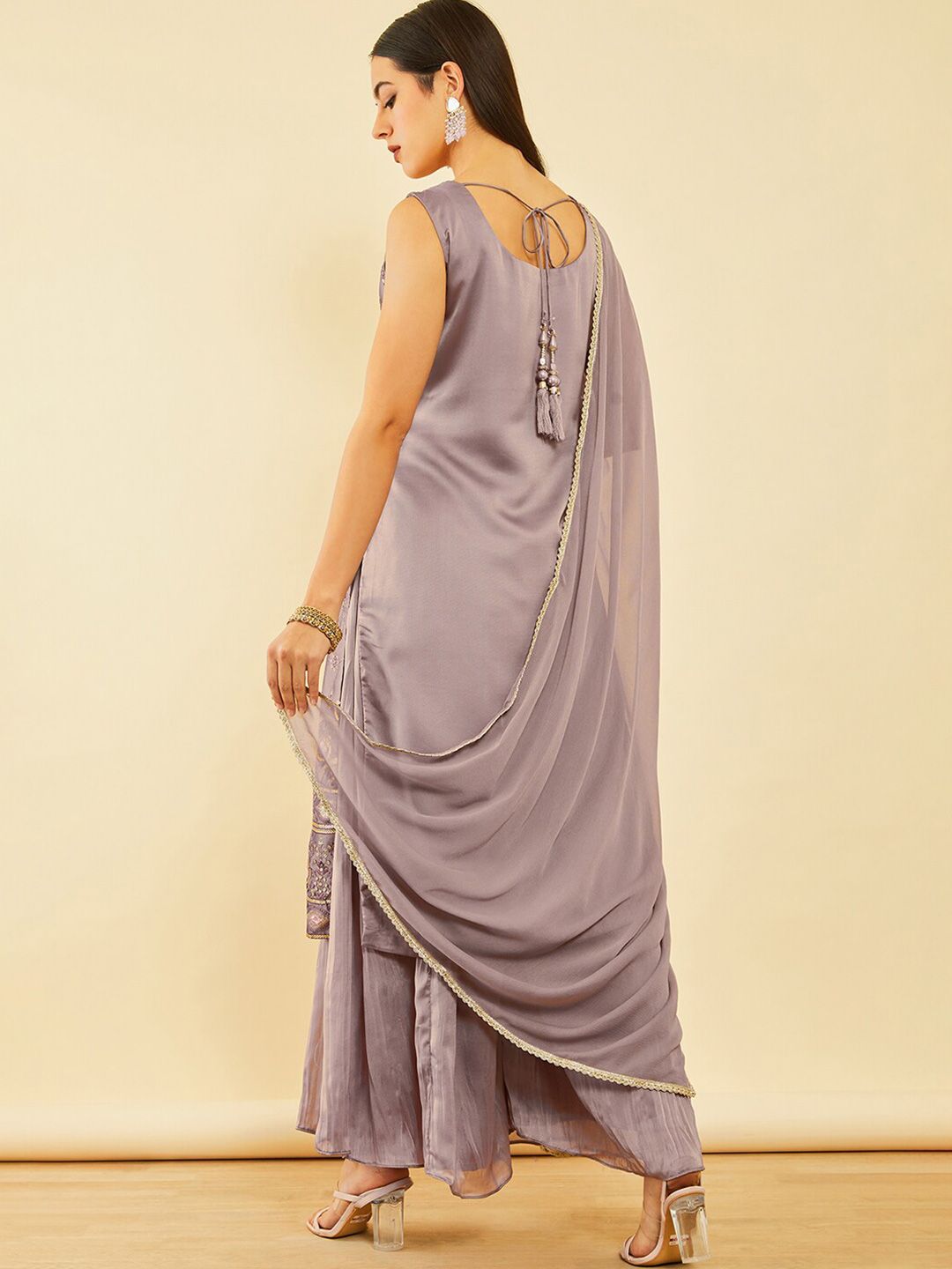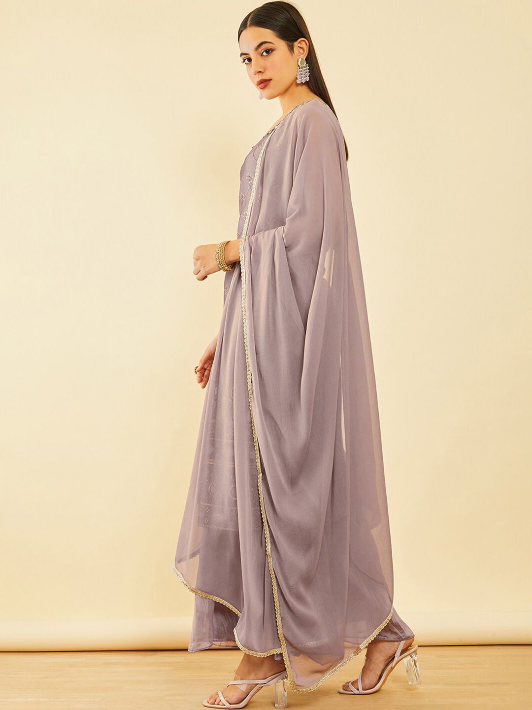 Dhiyona SO Women's Floral Embroidered Regular Sequinned Kurta with Palazzos & Dupatta