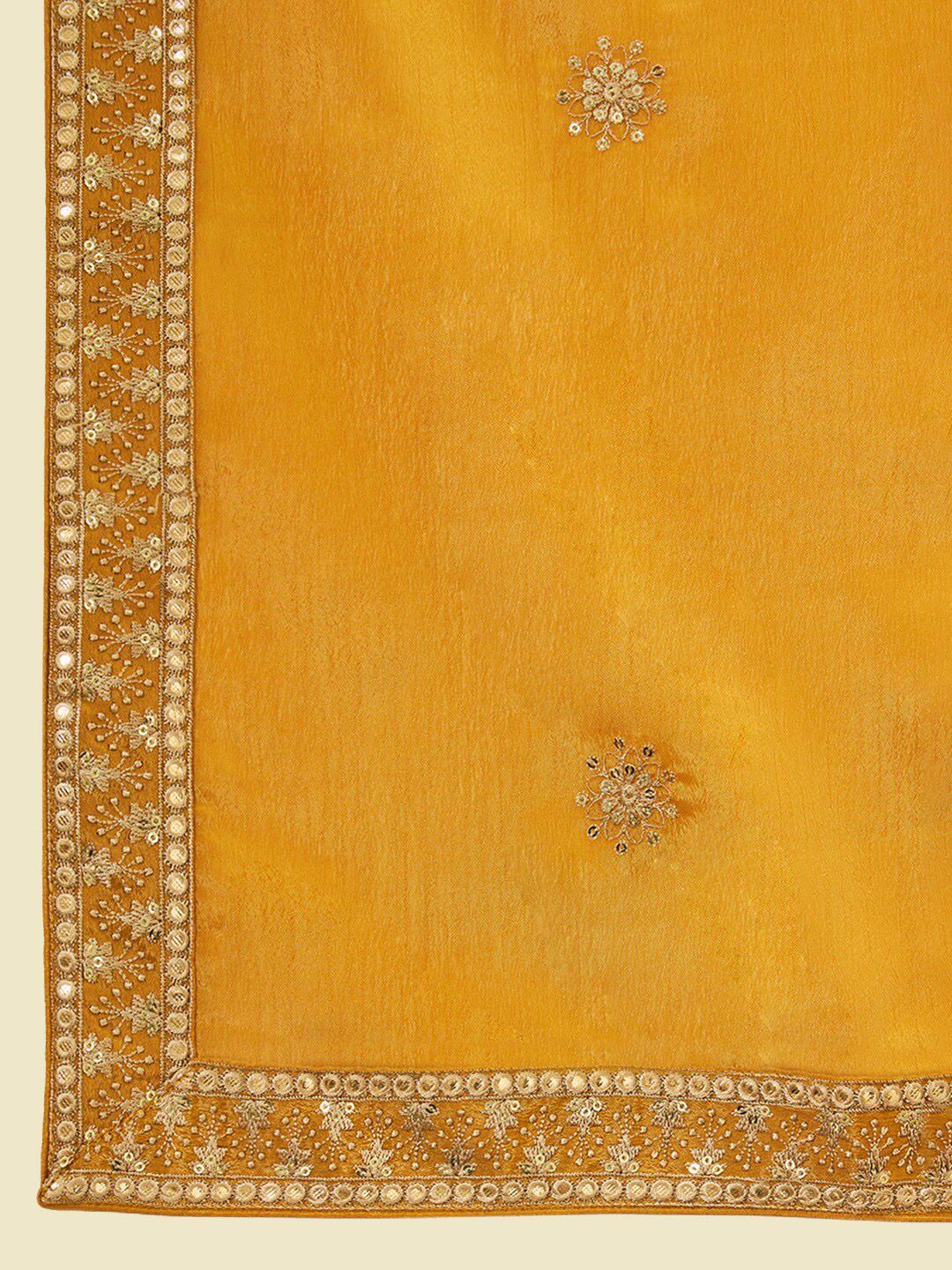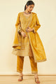 Mustard yellow & gold toned embroidered kurta with trousers & dupatta