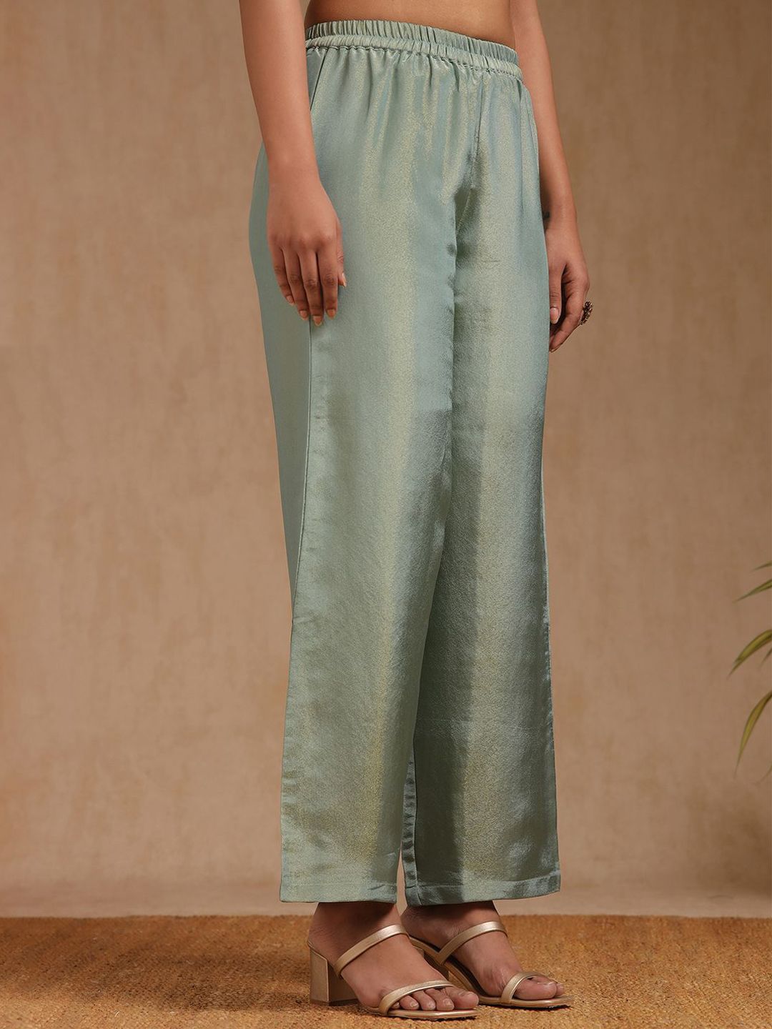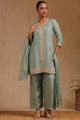 Turquoise blue & Gold-toned embroidered Kurta with Palazzos with dupatta
