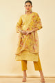 Mustard yellow & pink embroidered Kurta with Trousers & dupatta