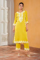 Mustard yellow & white embroidered kurta with trousers