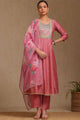 Pink embroidered Kurta with Trousers with dupatta