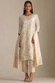 Beige and silver-toned embroidered kurta with trousers and dupatta