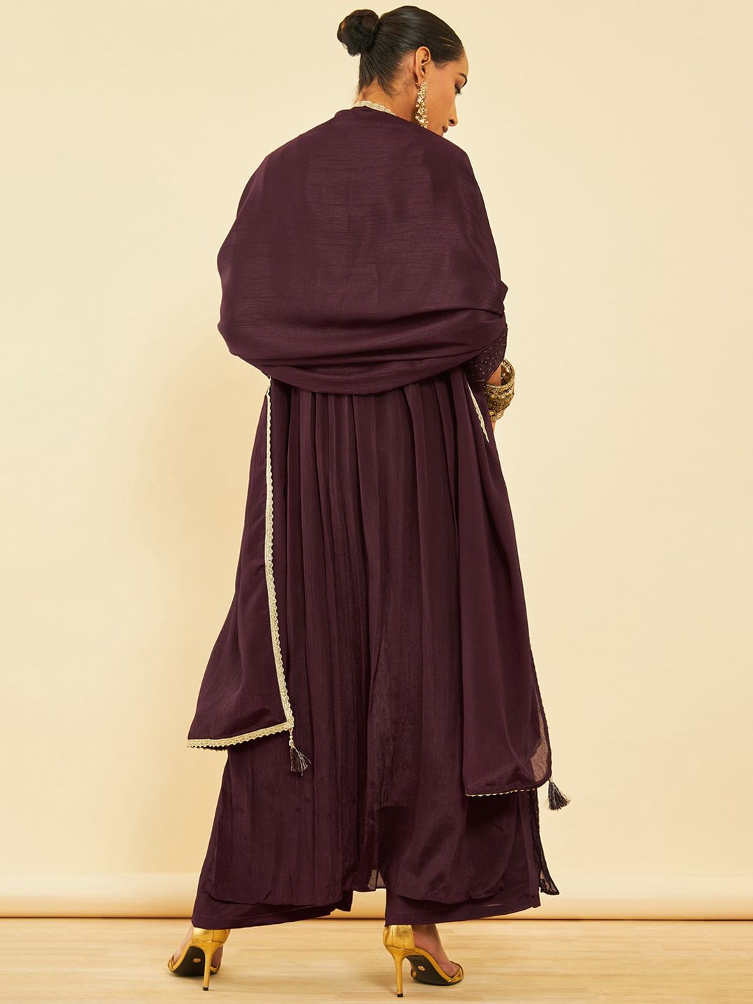 Dhiyona SO Women's Floral Embroidered Sequinned Kurta With Palazzos & Dupatta