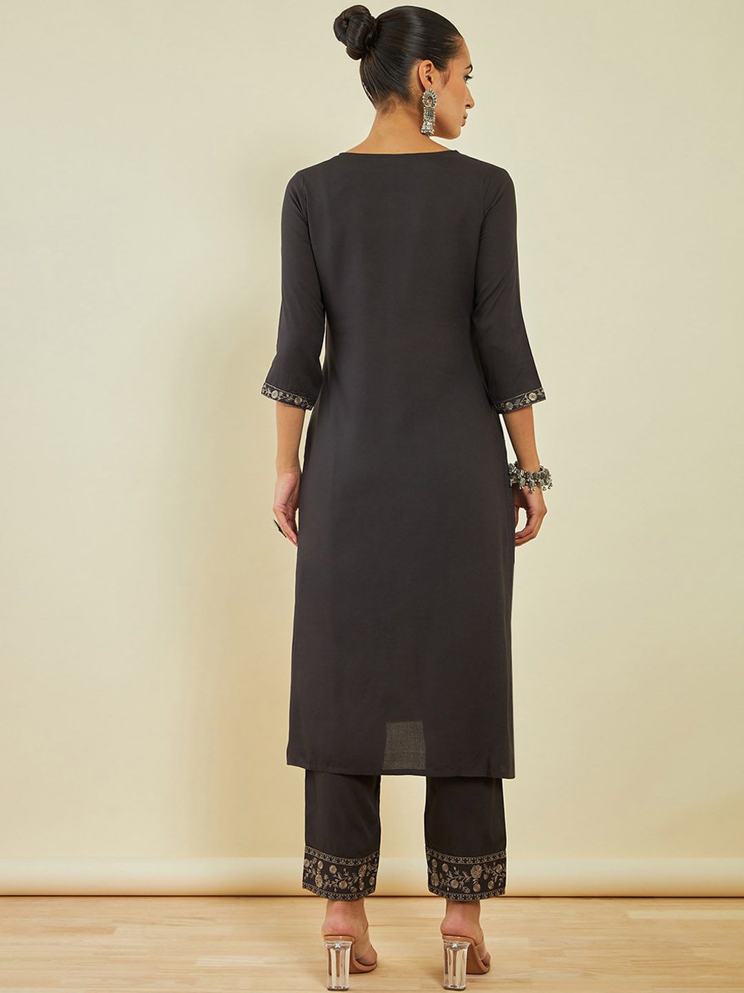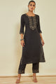 Charcoal embroidered Kurta with Trousers