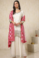 Off white, pink & gold Toned embroidered Kurta with Palazzos with dupatta
