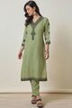 Green & Black embroidered Kurta with Trousers