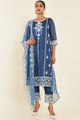Dhiyona SO Women's Floral Embroidered Thread Work Chanderi Silk Kurta With Trousers & Dupatta