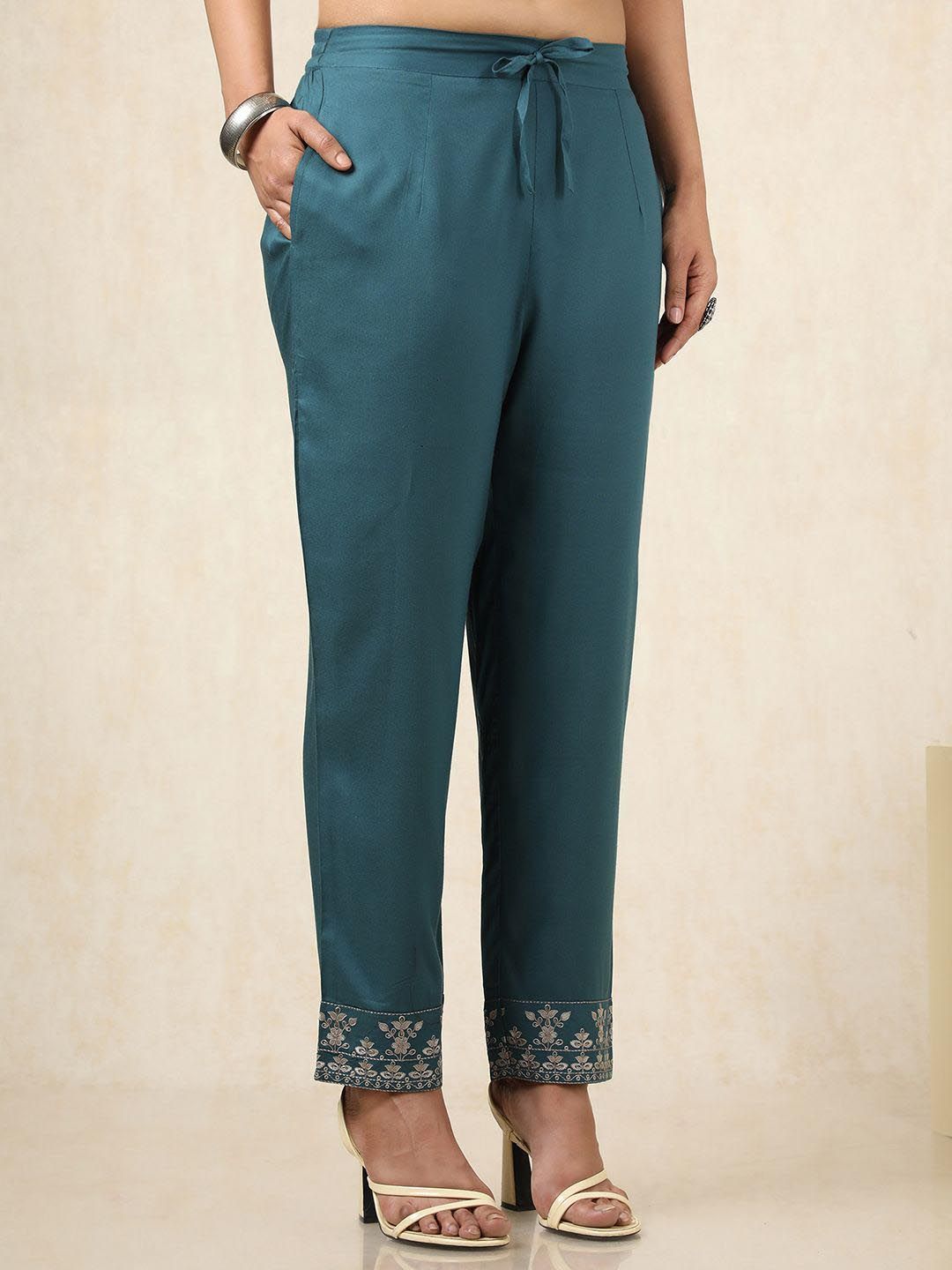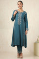 Dhiyona SO Women's Floral Embroidered Thread Work Notch Neck A-Line Kurta With Palazzos