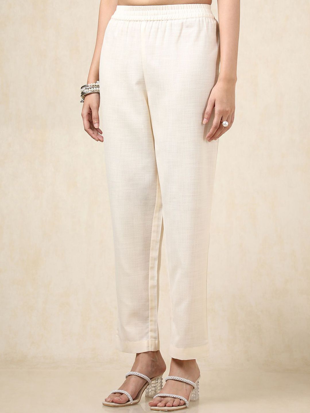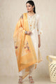 Off white, yellow and orange embroidered kurta with trousers and dupatta