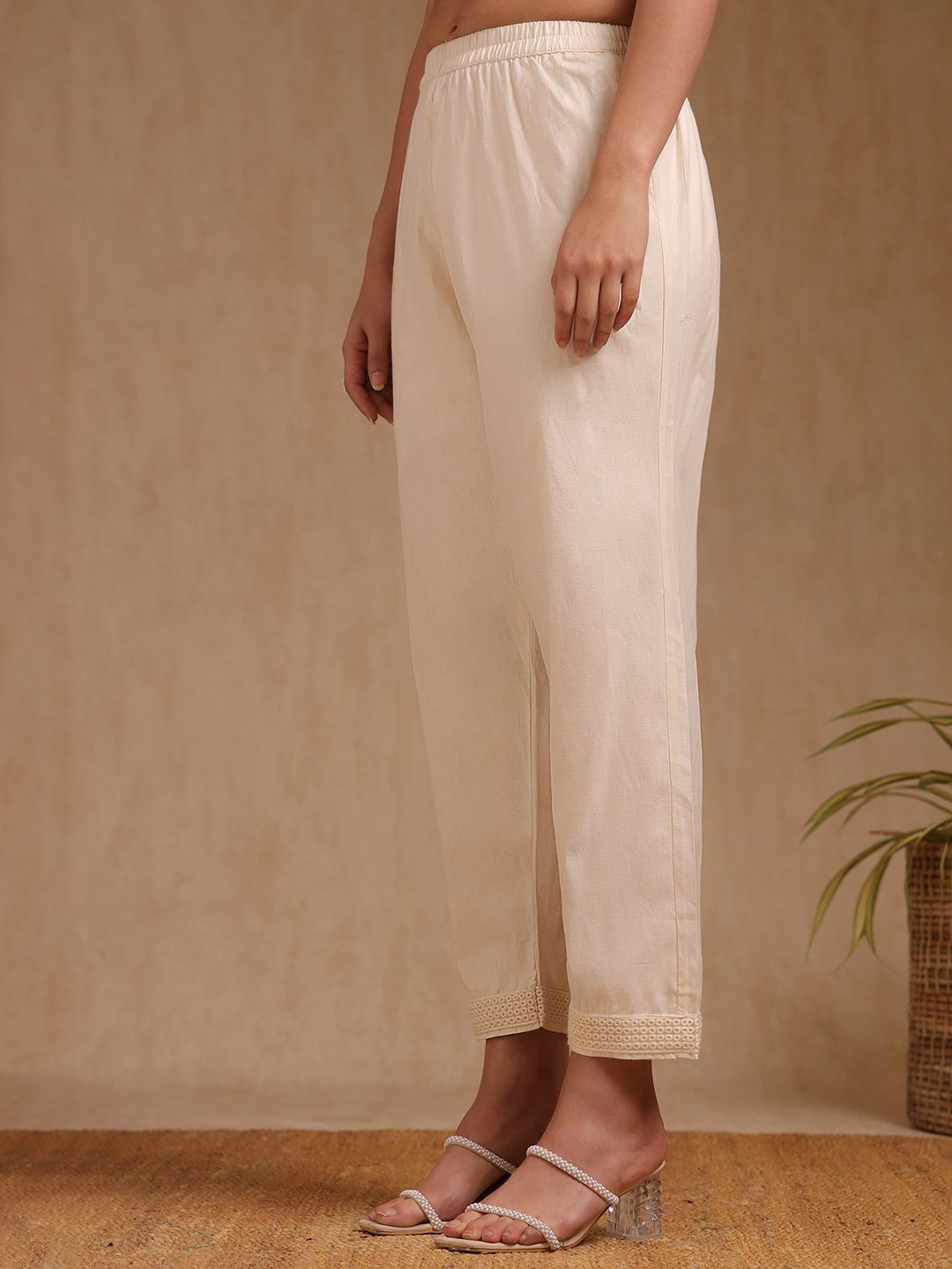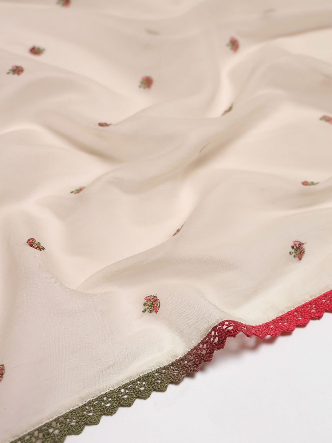 Dhiyona SO Women's Floral Embroidered Thread Work Tie-Up Neck Straight Kurta With Trousers And Dupatta