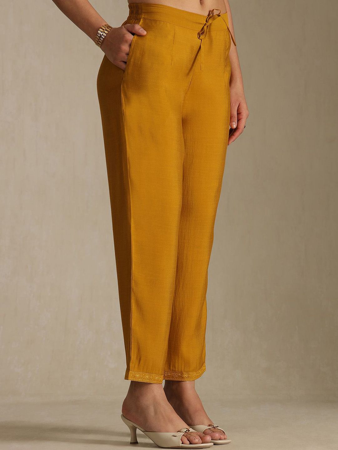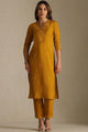 Dhiyona SO Women's Floral Embroidered V-Neck Thread Work Straight Kurta With Trousers
