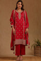 Fuchsia and gold toned embroidered kurta with trousers & dupatta
