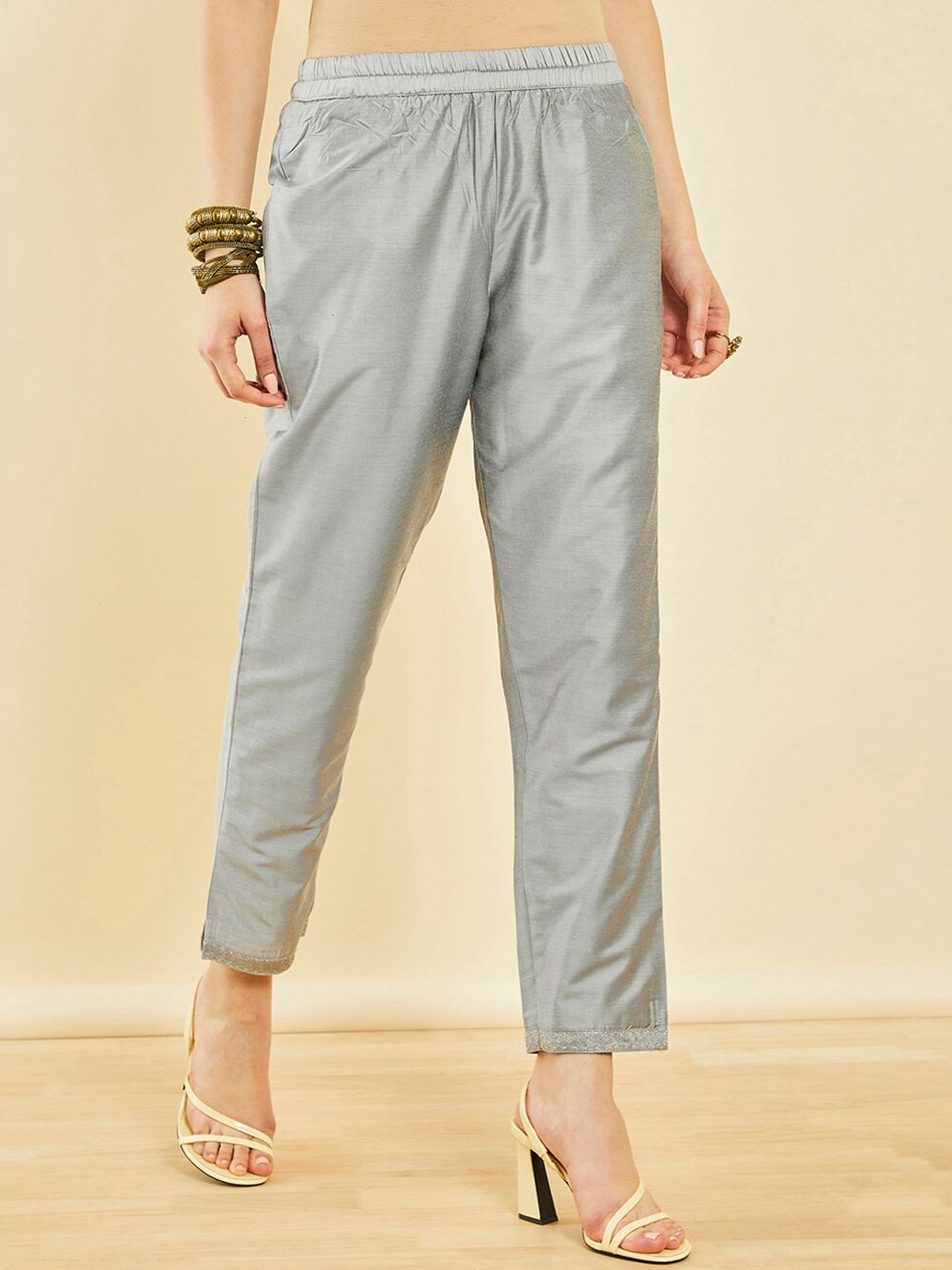 Dhiyona SO Women's Floral Embroidered Zari Regular Kurta & Trousers With Dupatta