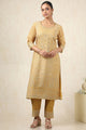 Beige and white printed kurta with trousers