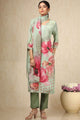 Dhiyona SO Women's Floral Printed Beads And Stones Mandarin Collar Straight Kurta With Trouser & Dupatta