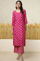 Dhiyona SO Women's Floral Printed Mirror Work Straight Kurta With Palazzos