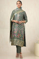 Dhiyona SO Women's Floral Printed Mirror Work Straight Kurta With Trousers & Dupatta