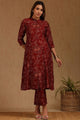 Dhiyona SO Women's Floral Printed Panelled Mandarin Collar A-Line Kurta With Trousers