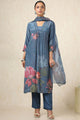 Dhiyona SO Women's Floral Printed Pleated Square Neck Beads & Stones Kurta With Trousers And Dupatta