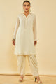 White printed Kurta with Dhoti Pants with dupatta
