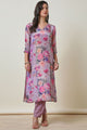 Dhiyona SO Women's Floral Printed Regular Beads and Stones Tissue Straight Kurta With Trouser