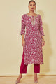 Dhiyona SO Women's Floral Printed Regular Gotta Patti Kurta With Trousers