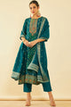 Dhiyona SO Women's Floral Printed Round Neck Three-Quarter Sleeves Kurta with Trousers & With Dupatta